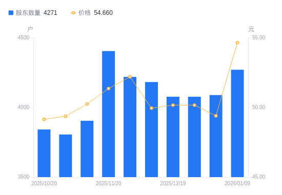 1月13日信息,数据显示,截至2026年1月9日,浙江正特A股股东总户数为4271户,较上期(2025年12月31日)填补182户,增幅4.45%。...